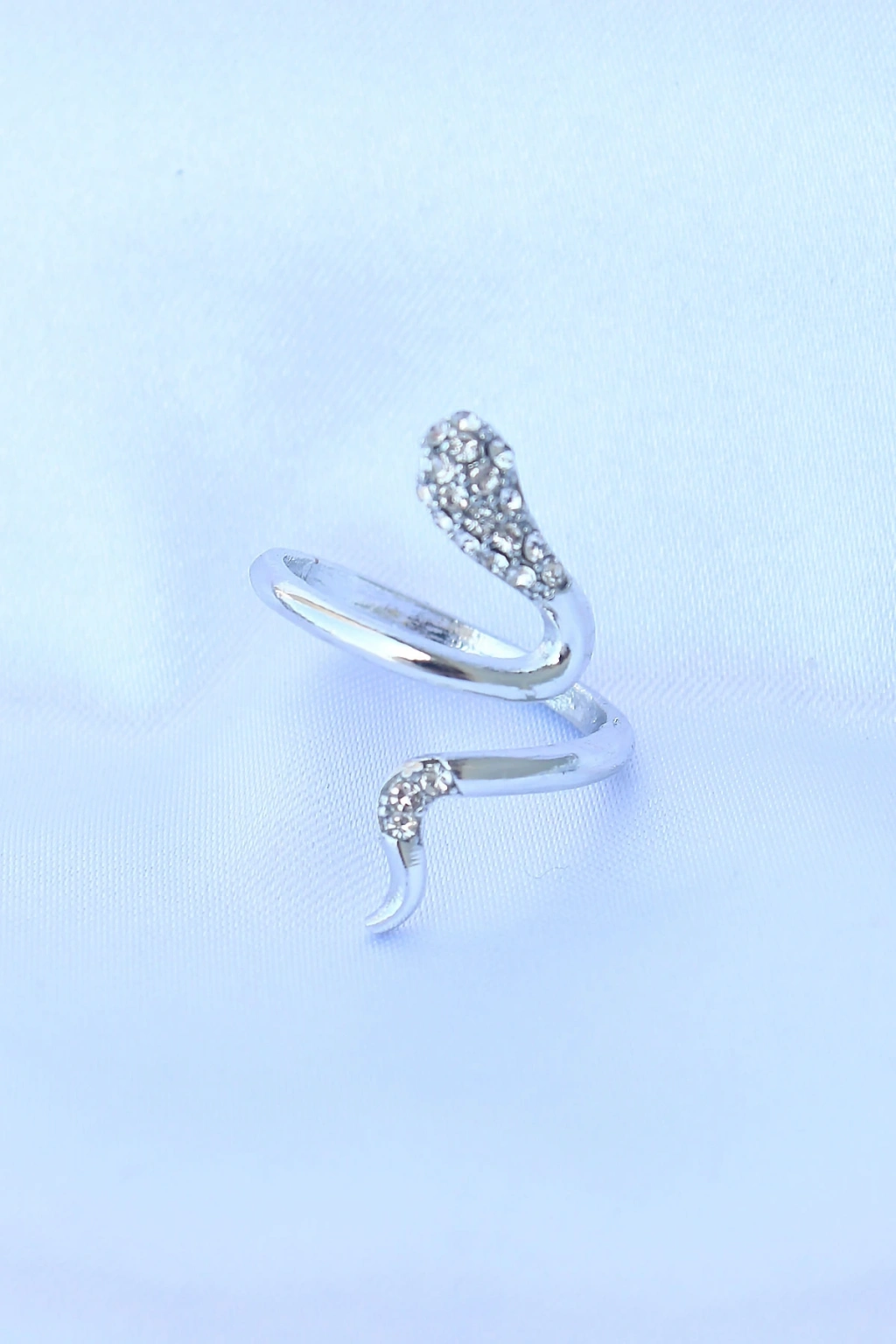 BFS Pirinç Gümüş Renk Ayarlanabilir Zirkon Taşlı Yılan Yüzük