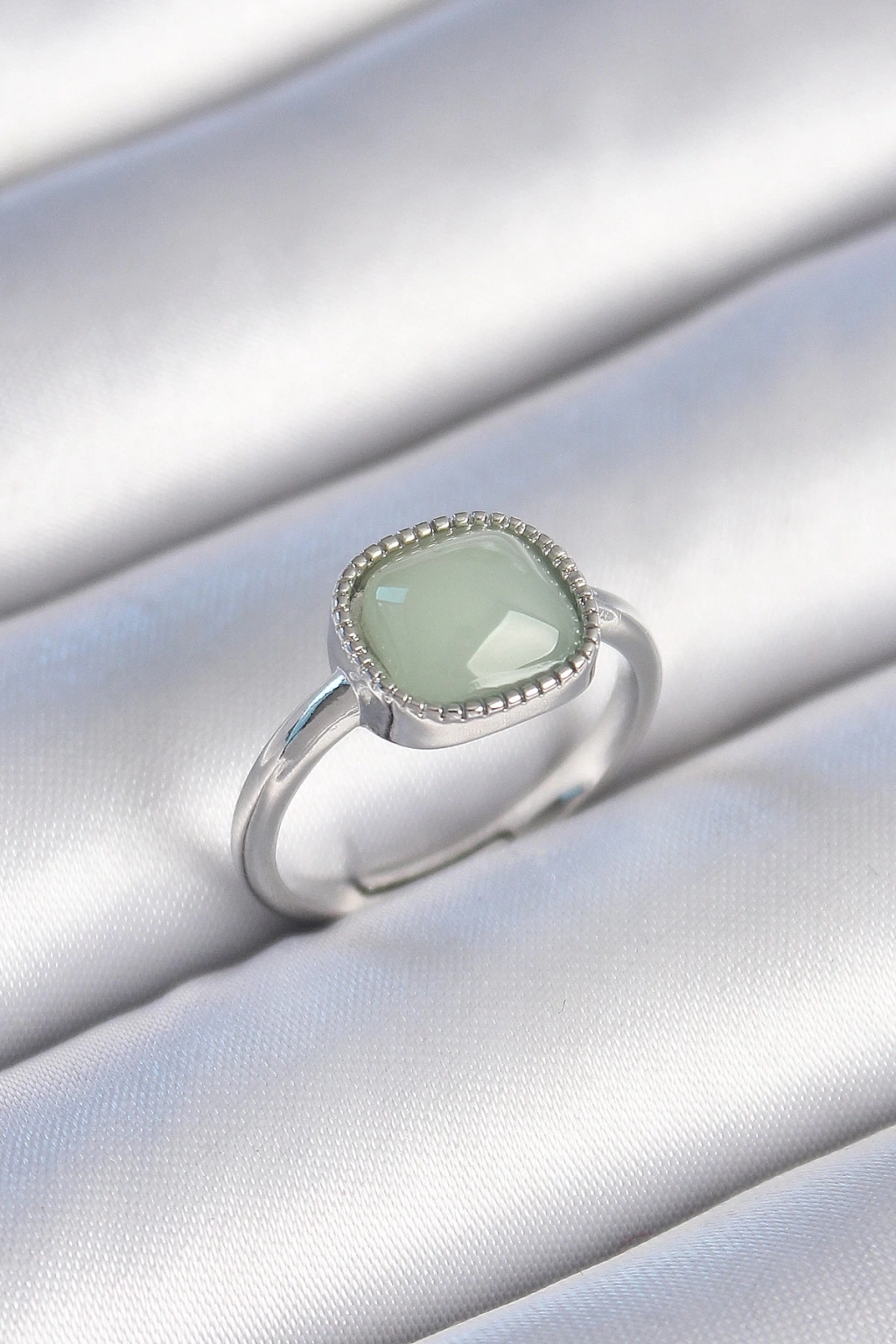 BFS Pirinç Gümüş Renk Yeşil Kare Mineli Kadın Yüzük