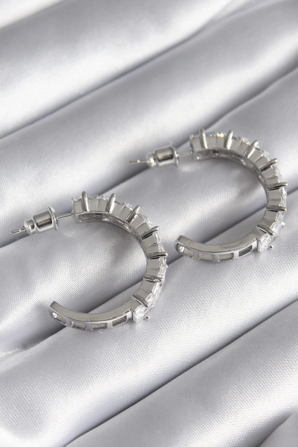 ÇOK SATAN BFS Pirinç Gümüş Renk Zirkon Taşlı Halka Model Kadın Küpe