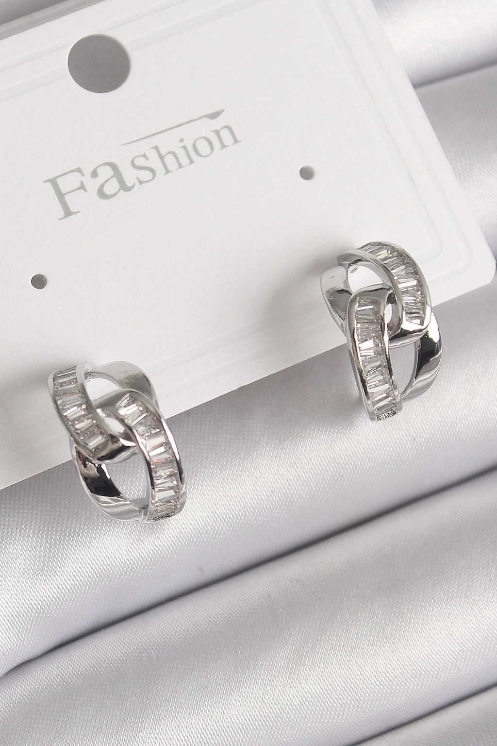 BFS Pirinç Gümüş Renk Zirkon Taşlı Zincir Model Kadın Küpe