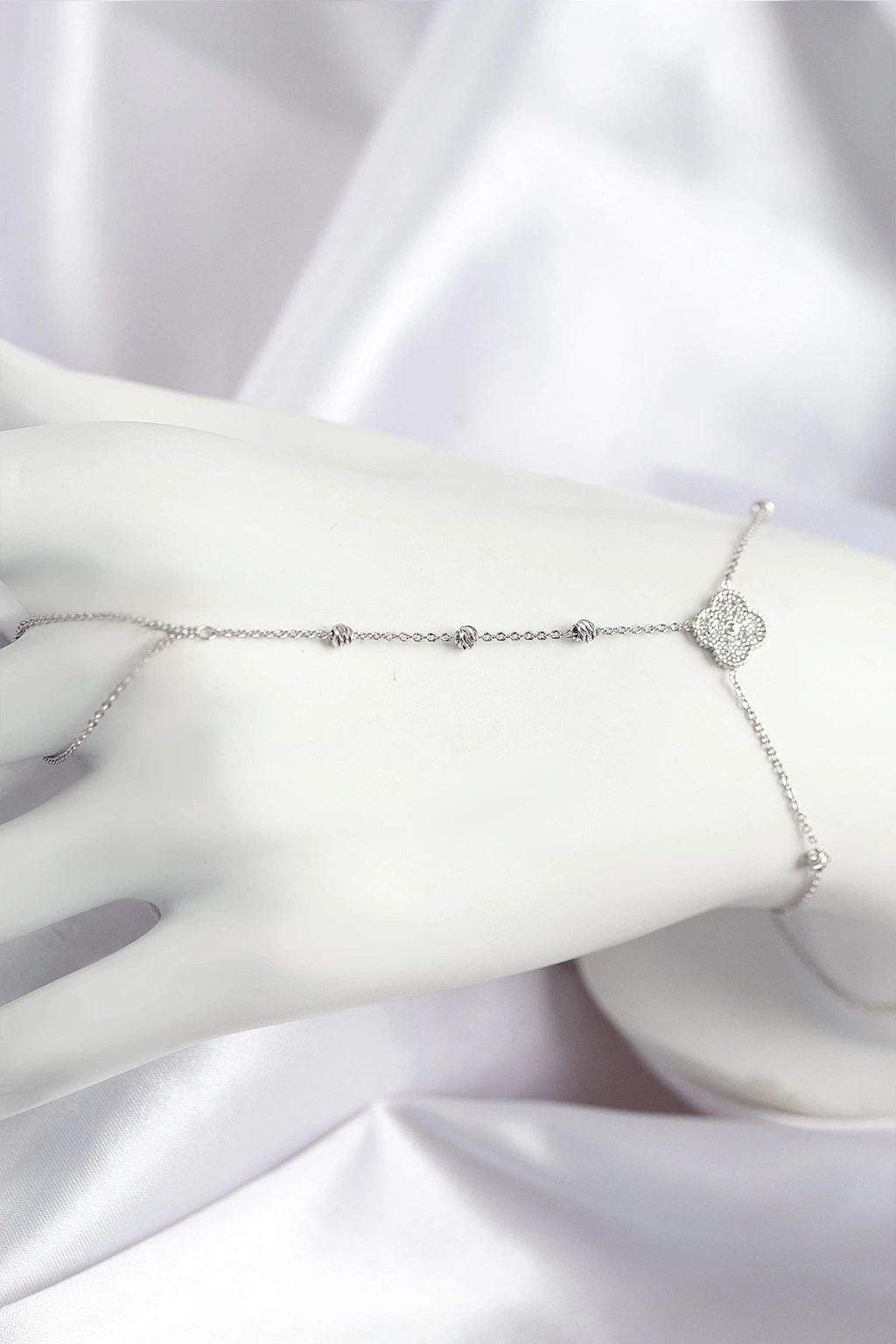 BFS Pirinç Zirkon Taşlı Yonca Model Gümüş Renk Şahmeran