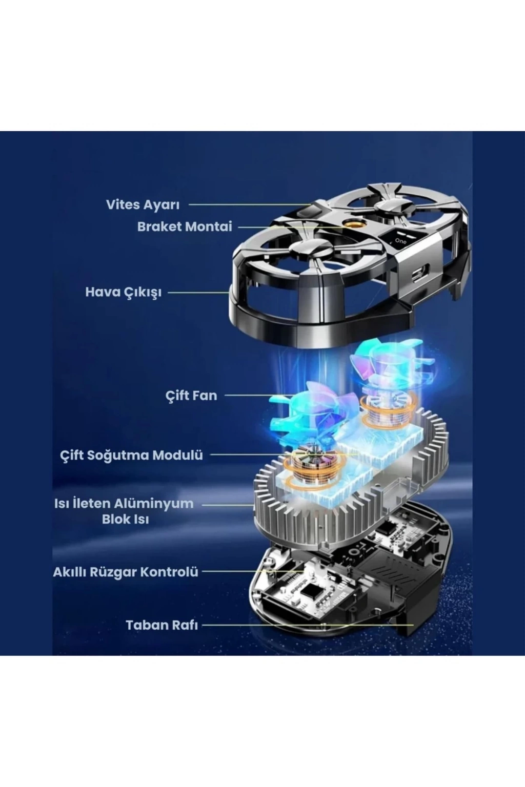 Bütün Telefon Modelleri İle Uyumlu Telefon Soğutucu ÇiftFan Pervaneli 3 Kademeli Işıklı Oyuncu Güçlü
