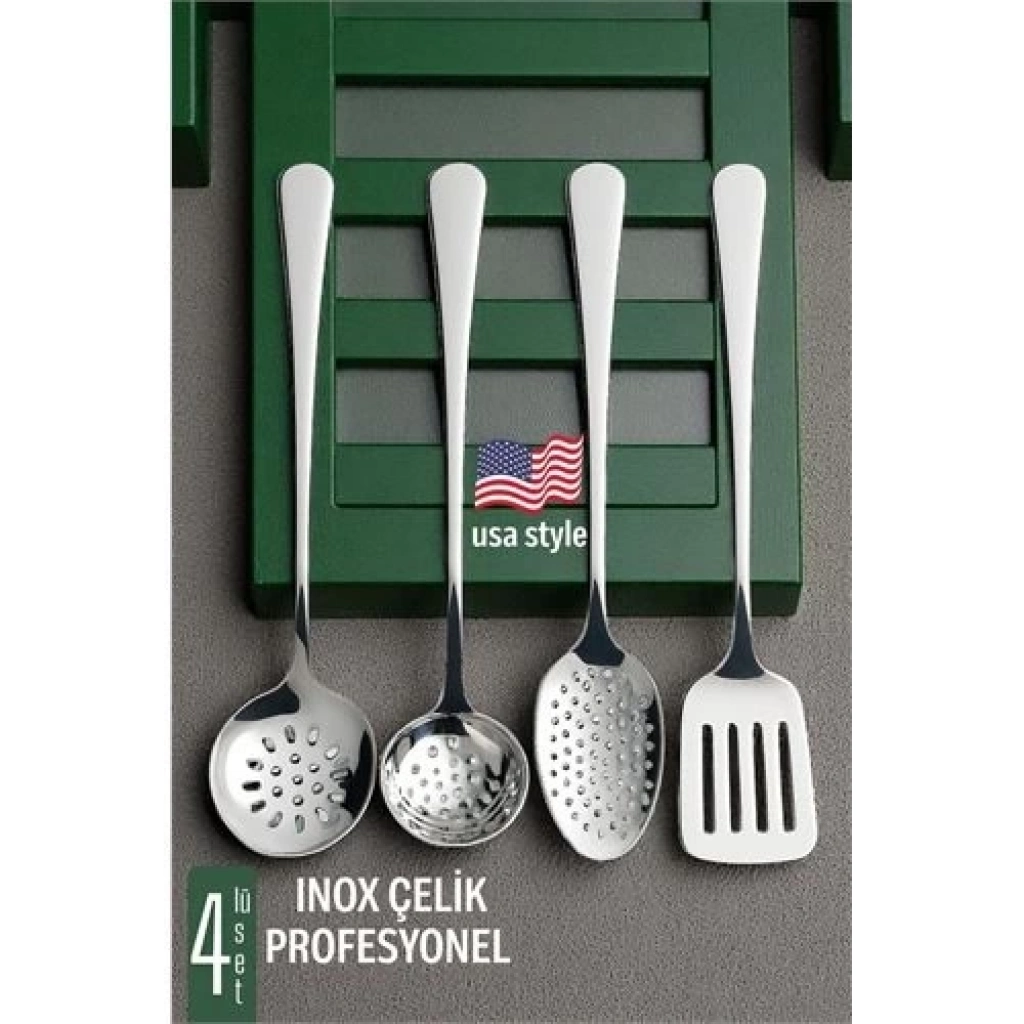 USA Style 4’lü Inox Çelik Mutfak Gereçleri – Profesyonel Servis ve Süzme Seti
