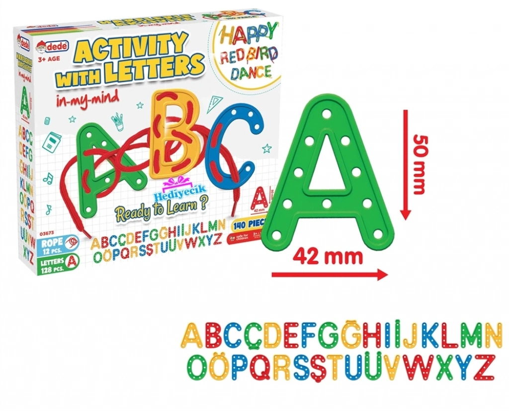 Ürün; 12 adet ip ve 128 adet harf ile birlikte 140 parçadan oluşmaktadır.
