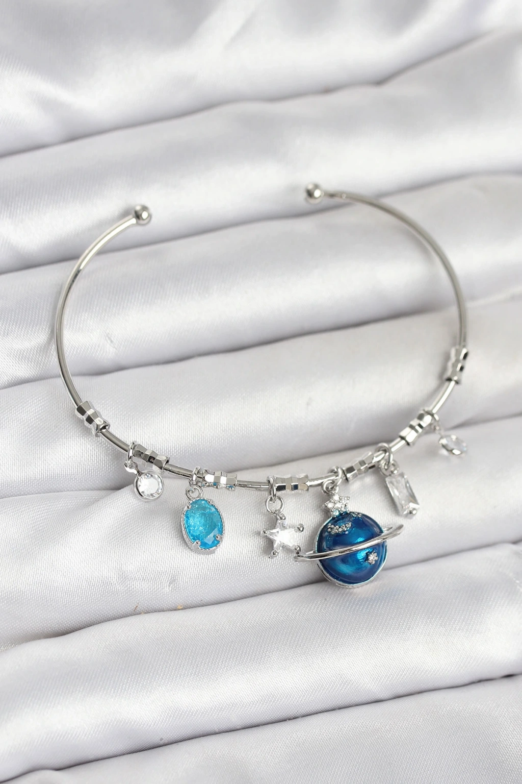 Gezegen Charmlı Gümüş Renk Pirinç Kadın Bileklik
