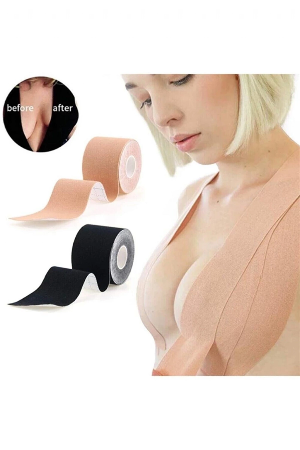 GÖĞÜS DİKLEŞTİRİCİ BANTGöğüs bandı, göğüslerinizi istenilen bir pozisyonda tutmak ve kaldırmak için kullanılan bir banttır. Göğüs bandını istediğiniz ölçüde keserek uygulayabilirsiniz. %95 oranında pamuk ve %5 elastan kumaştan üretilmiştir. 5cm x 5m ölçülerinde olup, göğüs bandınızı istediğiniz boyutlarda keserek kullanabilirsiniz. Yapıştırıldıktan sonra tekrar kullanılamaz. Suya ve terlemeye dayanıklıdır. Cildinizin banda vereceği reaksiyonu görebilmek adına, uzun süreli kullanımdan 48 saat önce göğüs bandını 3-4 saat boyunca cildinizin üzerinde küçük bir alana uygulayarak denemenizi tavsiye ederiz.