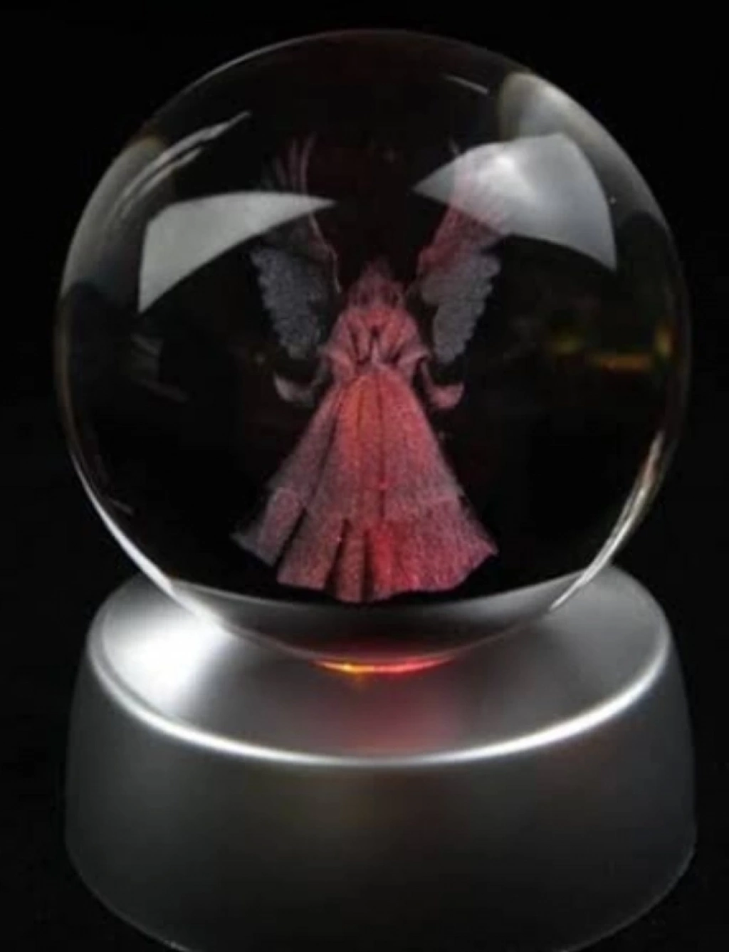 ÇOK SATAN Dekoratif Kanatlı Melek Tasarımlı Ahşap Altlıklı Işıklı Cam Küre Cam:6cm Ahşap:2cm