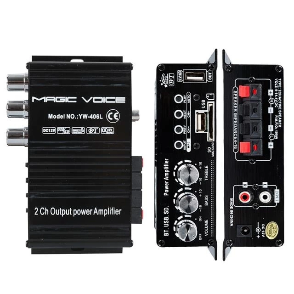 MagicVoice YW-406L, motosikletler için özel olarak tasarlanmış, yüksek performanslı bir Bluetooth amfi sistemidir. 12 Volt güç girişi ile çalışan bu 2 kanallı amfi, özellikle motosiklet kullanıcılarının müzik deneyimini güçlendirmek amacıyla tasarlanmıştır. Kompakt yapısı ve kolay kurulum imkânı sunmasıyla öne çıkan MagicVoice YW-406L, USB, SD kart ve Bluetooth bağlantı seçenekleri sayesinde farklı cihazlarla uyumlu çalışır. Ürünün uzaktan kumandası sayesinde tüm kontrolleri rahatça yapabilirsiniz.