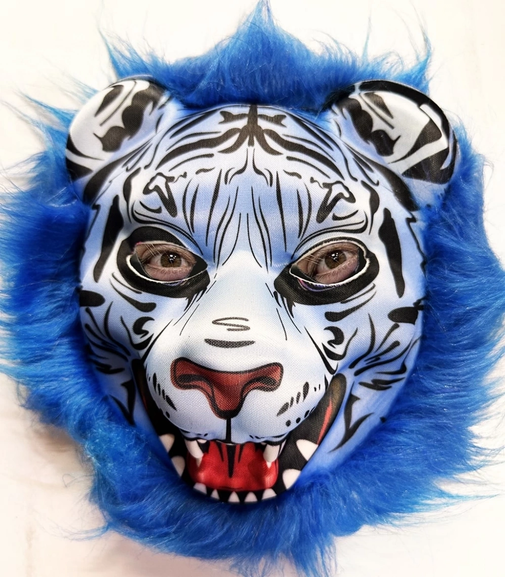 ÇOK SATAN Mavi Saçlı Kaplan Maskesi Kurt Maskesi Mega Peluş 27 No