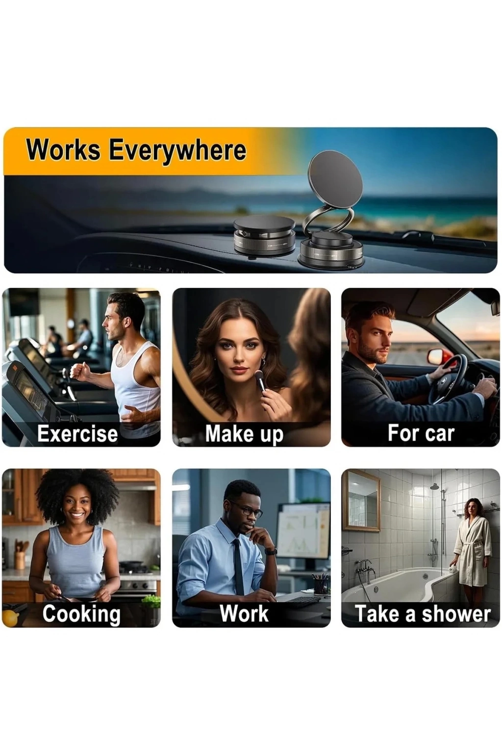 Vakum tabanı sayesinde yüzeylere sağlam bir şekilde yapışarak sabit bir kullanım sağlar.