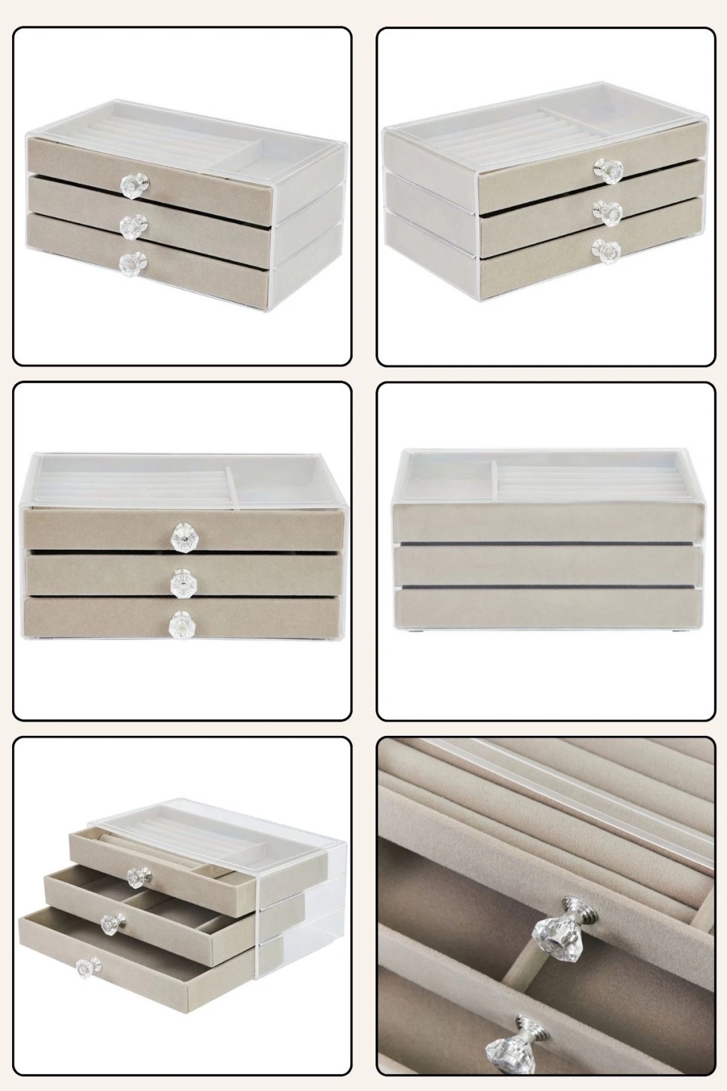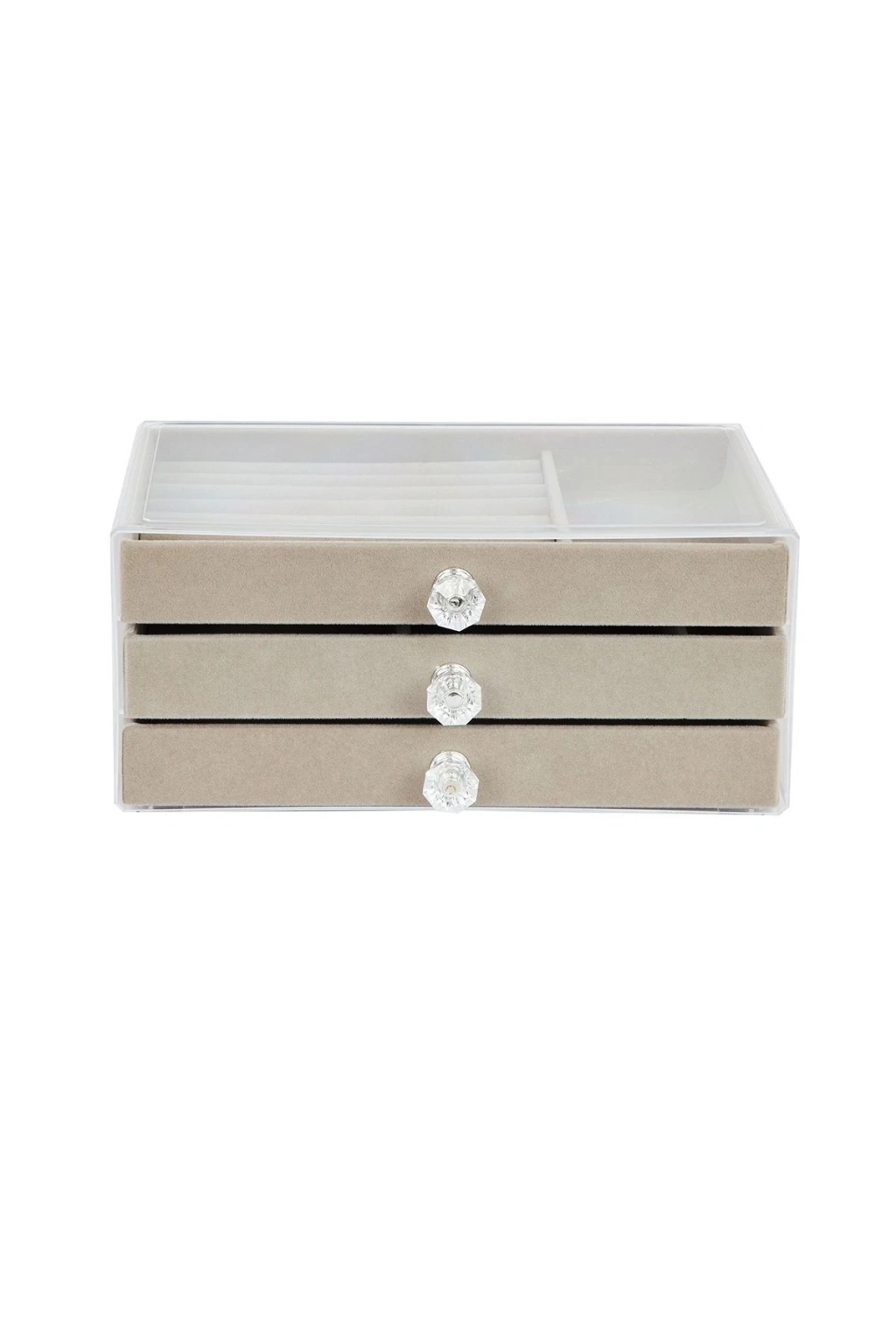 3 Çekmeceli Şeffaf Kapaklı Kadife Takı Kutusu ve Mücevher Düzenleyici Organizer