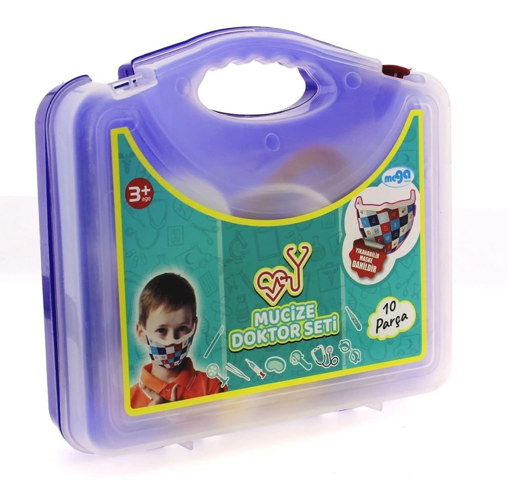 Set içerisinde maske, gözlük, steteskop, ateş ölçer, şırınga, cımbız, neşter v.b. malzemeler bulunur.