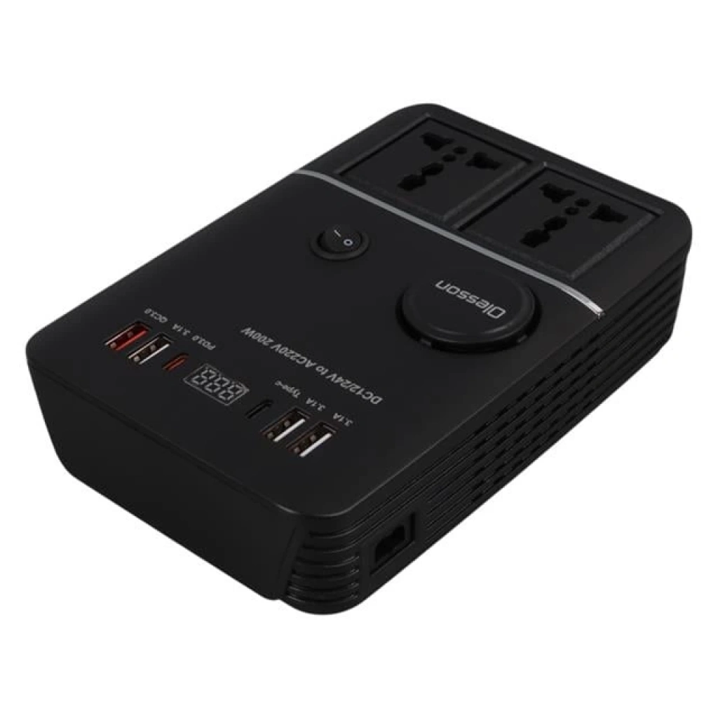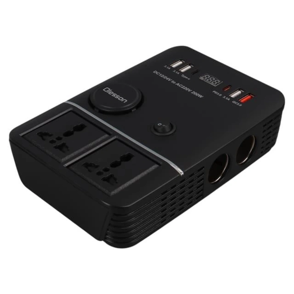 Olesson 1661 DC 12-24V 200W Oto Araç Power İnverter 2x Çakmak Girişi - 2x TYPE-C - 4x USB - 2x 220V Üniversal Priz Özellikleri