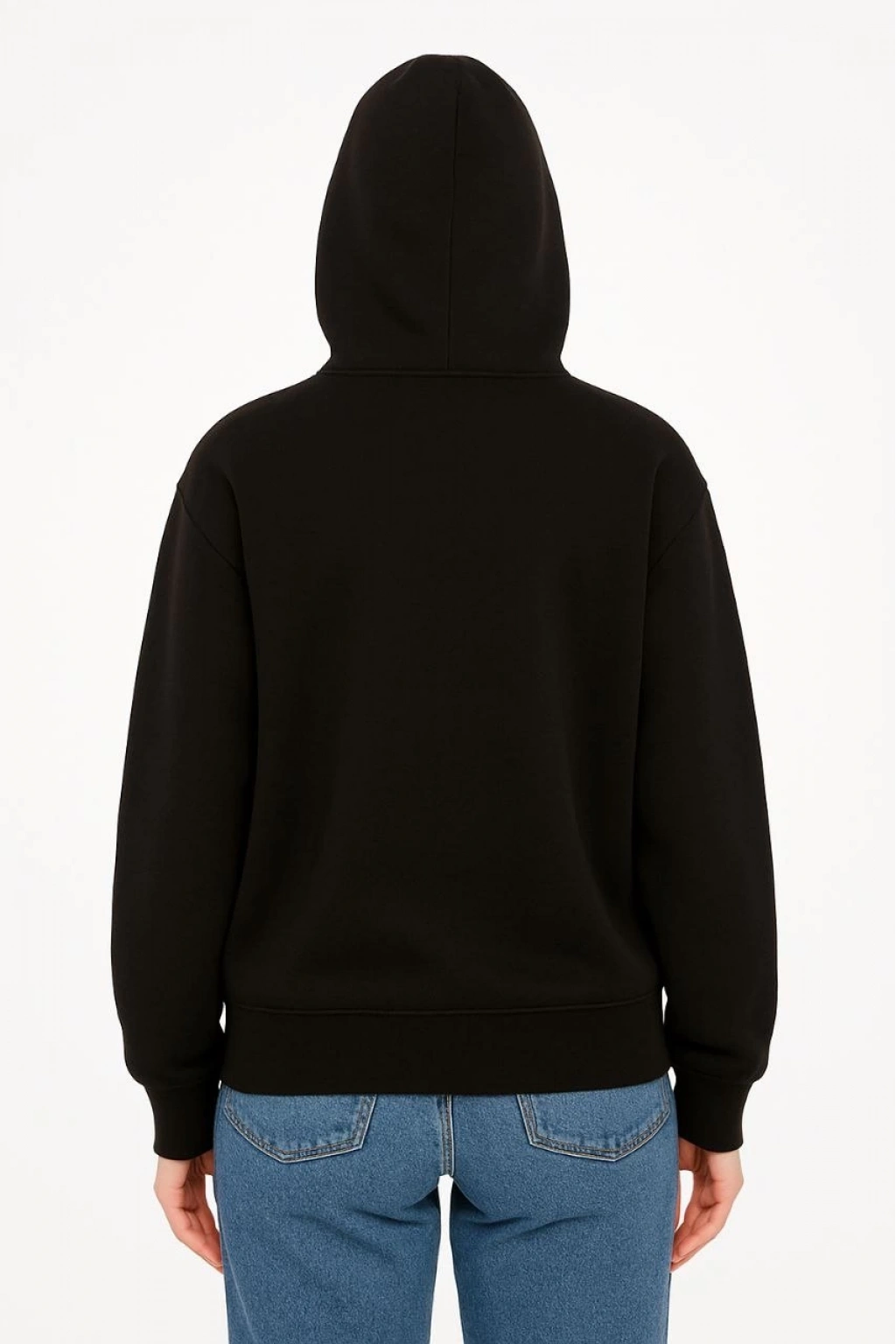 Oversize Kapüşonlu Sweatshirt Hoodie 3 İplik Şardonlu Pamuklu Kumaş, Önü Baskılı, Fermuarlı Rahat Kalıp, Kışlık ve Sokak Stili Sweat - Siyah