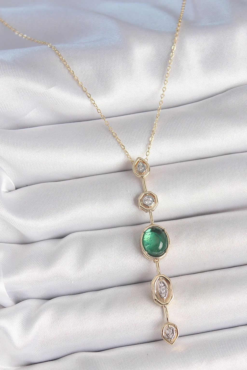 ÇOK SATAN Pirinç Zincir Zümrüt Yeşil Gold Renk Zirkon Taşlı Y Kolye