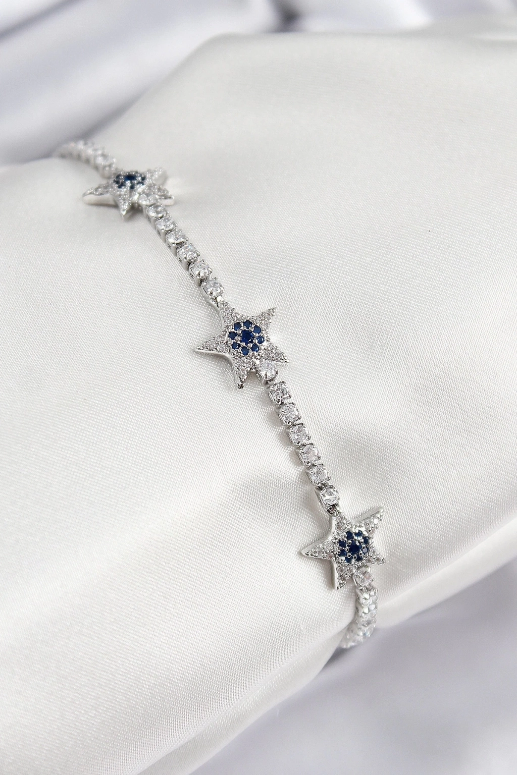 ÇOK SATAN Pirinç Zirkon Taşlı Yıldız Model Gümüş Renk Kadın Bileklik