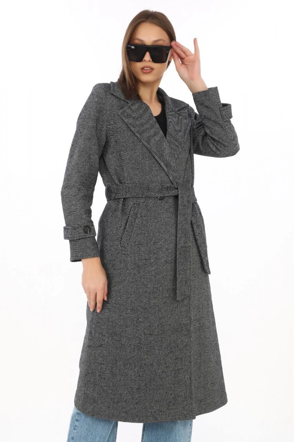 Astarlı Balık Sırtı Kaşmir Kaşe Kaban - Füme