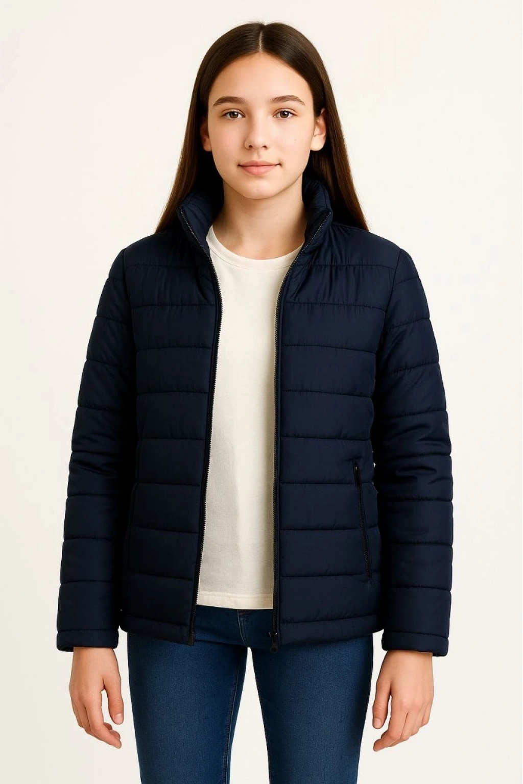Şişme Mont Hafif ve Sıcak Tutucu Kışlık Fermuarlı Su İtici Rahat Günlük Mont Kapüşonuz Modern Tasarım - Lacivert