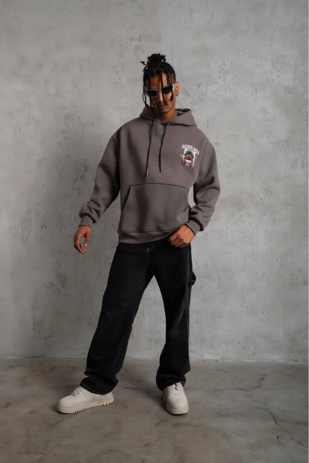 SCHOOL BOY Baskılı Kapüşonlu Sweat - Gri