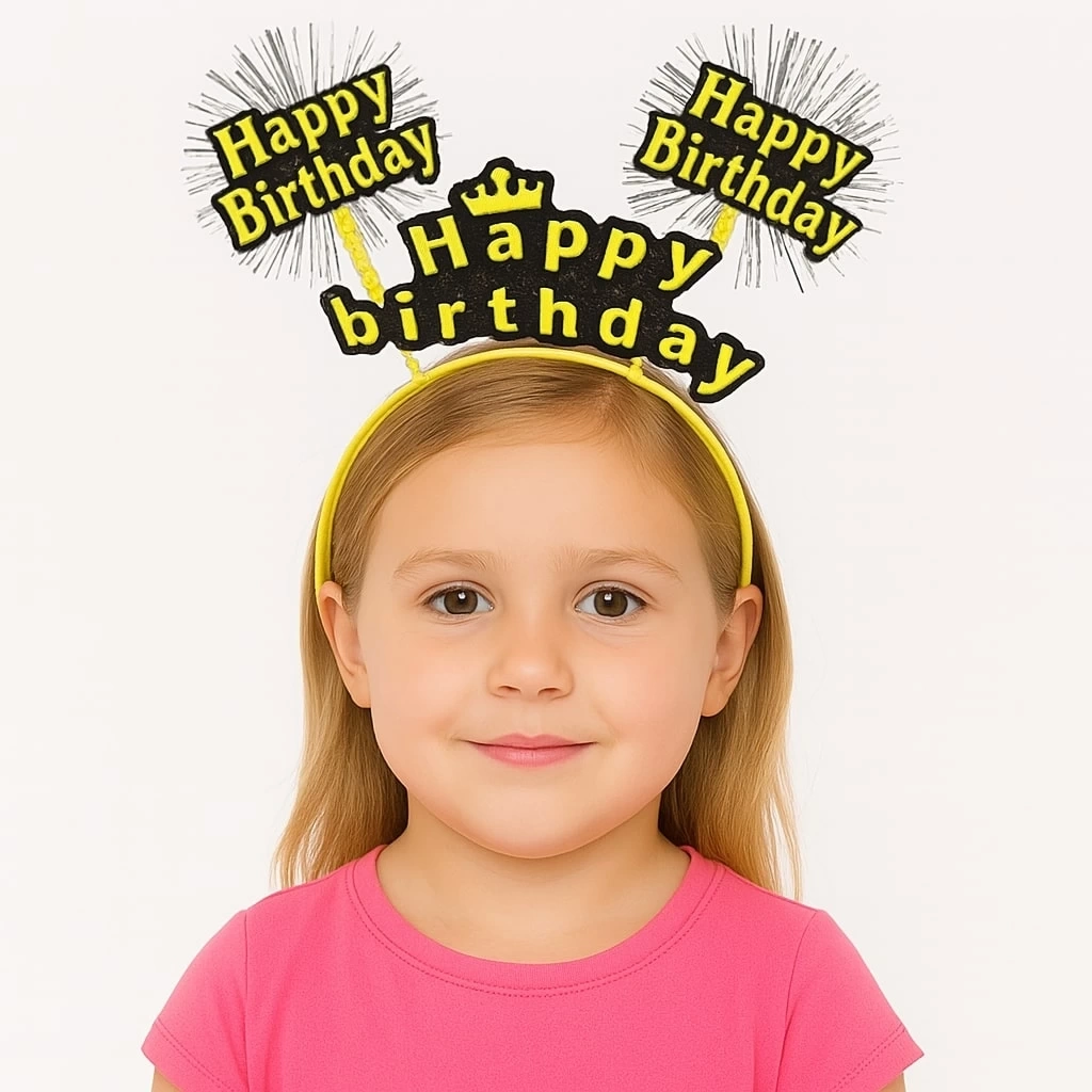 • Sarı Renk Işıltılı Yazılı Doğum Günü Parti Tacı