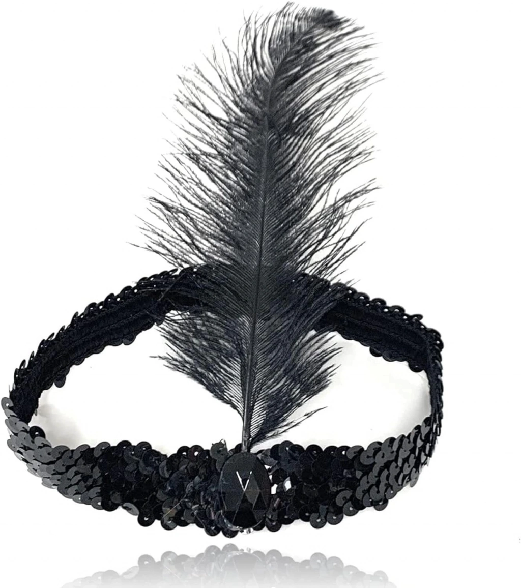 ÇOK SATAN Siyah Renk Çarliston Başlık 90 Lı Yıllar 80 Li Yıllar Tüylü Saç Bandı