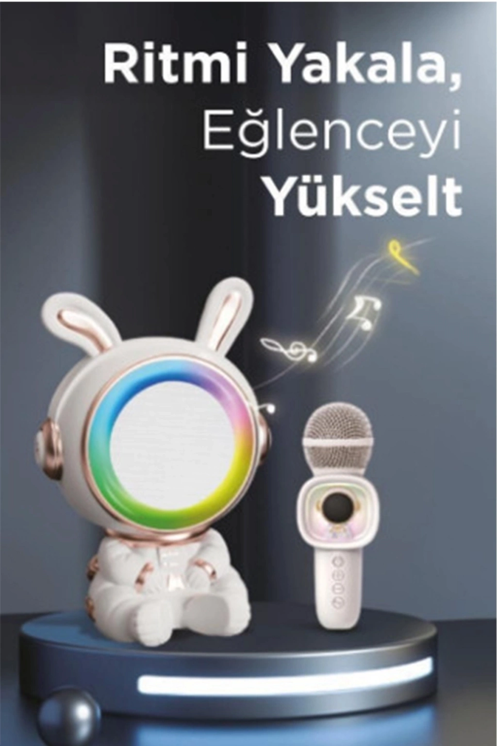 ÇOK SATAN Taşınabilir Rgb Işılı Sevimli Figürlü Mikrofonlu Karaoke Bluetooth Hoparlör Krem