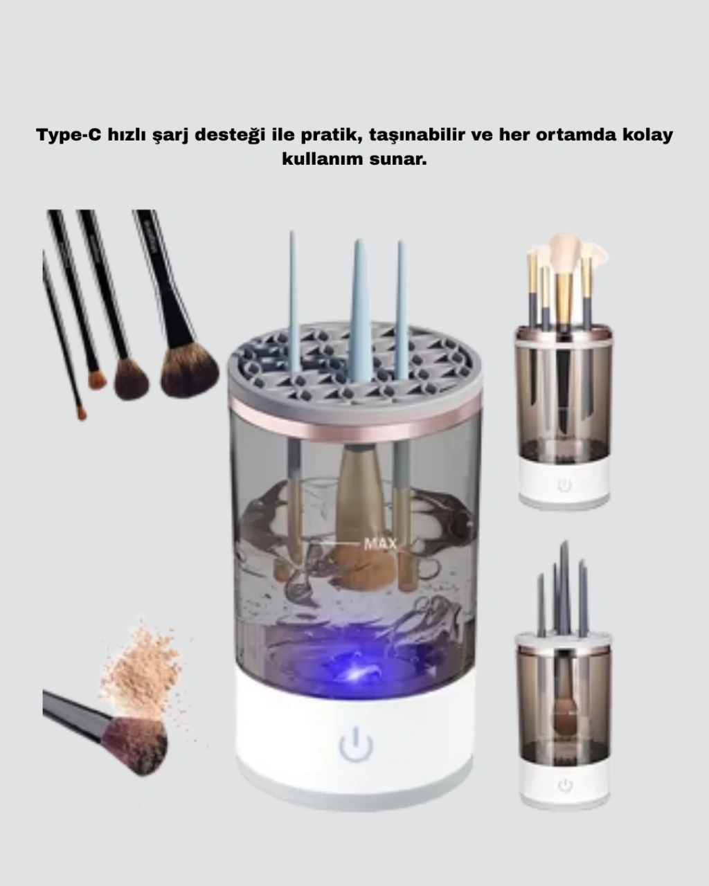 Bu pratik makyaj fırçası temizleyici, cilt sağlığınızı korurken makyaj kalitenizi de artırır. Düzenli temizlik, fırçaların daha uzun ömürlü olmasını sağlar. Cihazın kompakt tasarımı dolapta veya çantada kolay saklama imkânı sunar. Montaj gerektirmez ve suya dayanıklı malzeme ile üretilmiştir. USB şarjlı yapısı her yerde kullanım kolaylığı sağlar.