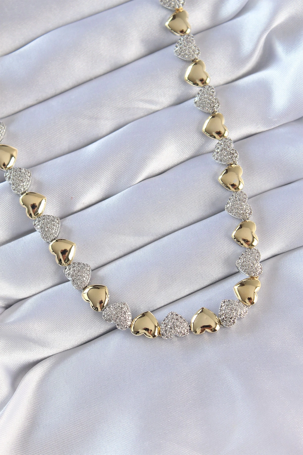 ÇOK SATAN Vip Seri Pirinç Çift Renk Zirkon Taşlı Kalp Tasarımlı Kolye