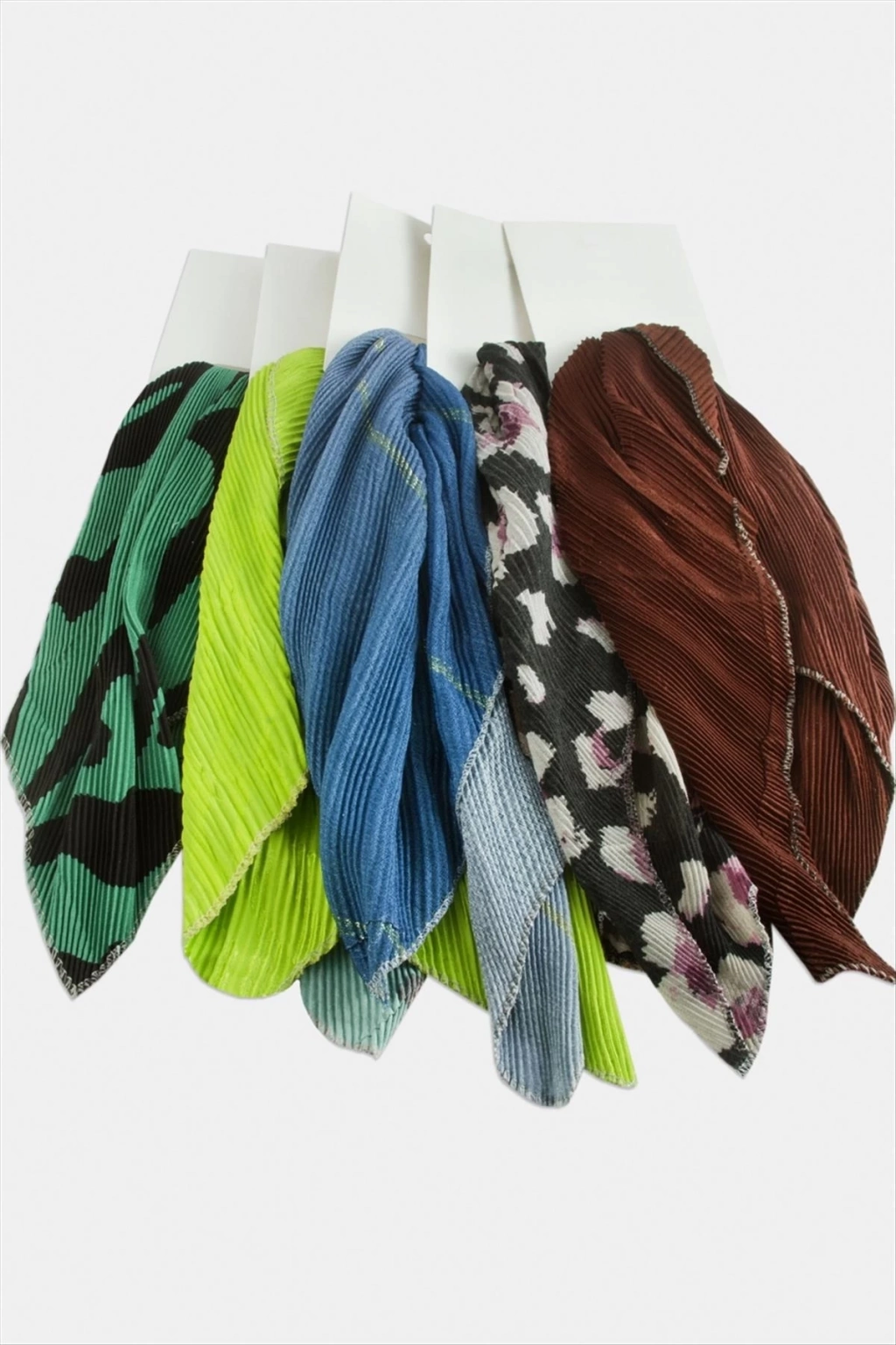 Fular; Ürün malzemesi pliseli kumaş kullanılmıştır. Ürün boyu 50*50 cmdir. Ürün renkleri ve desenleri asortilidir. Siparişleriniz de karışık olarak gönderilecektir. Kartlıdır.