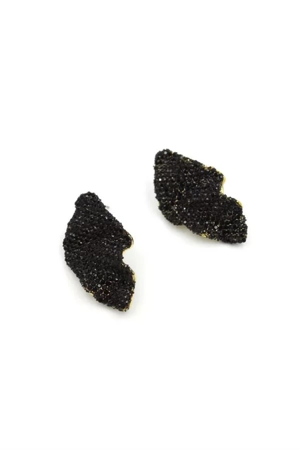 Dalgalı Taşlı Küpe - Siyah