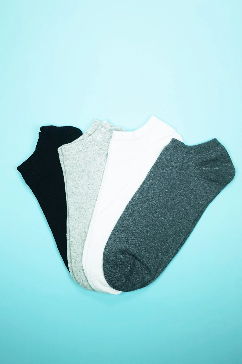 Paket içeriğinde 1 adet siyah , 1 adet beyaz , 1 adet koyu gri ve 1 adet açık gri olmak üzere 4 çift çorap vardır