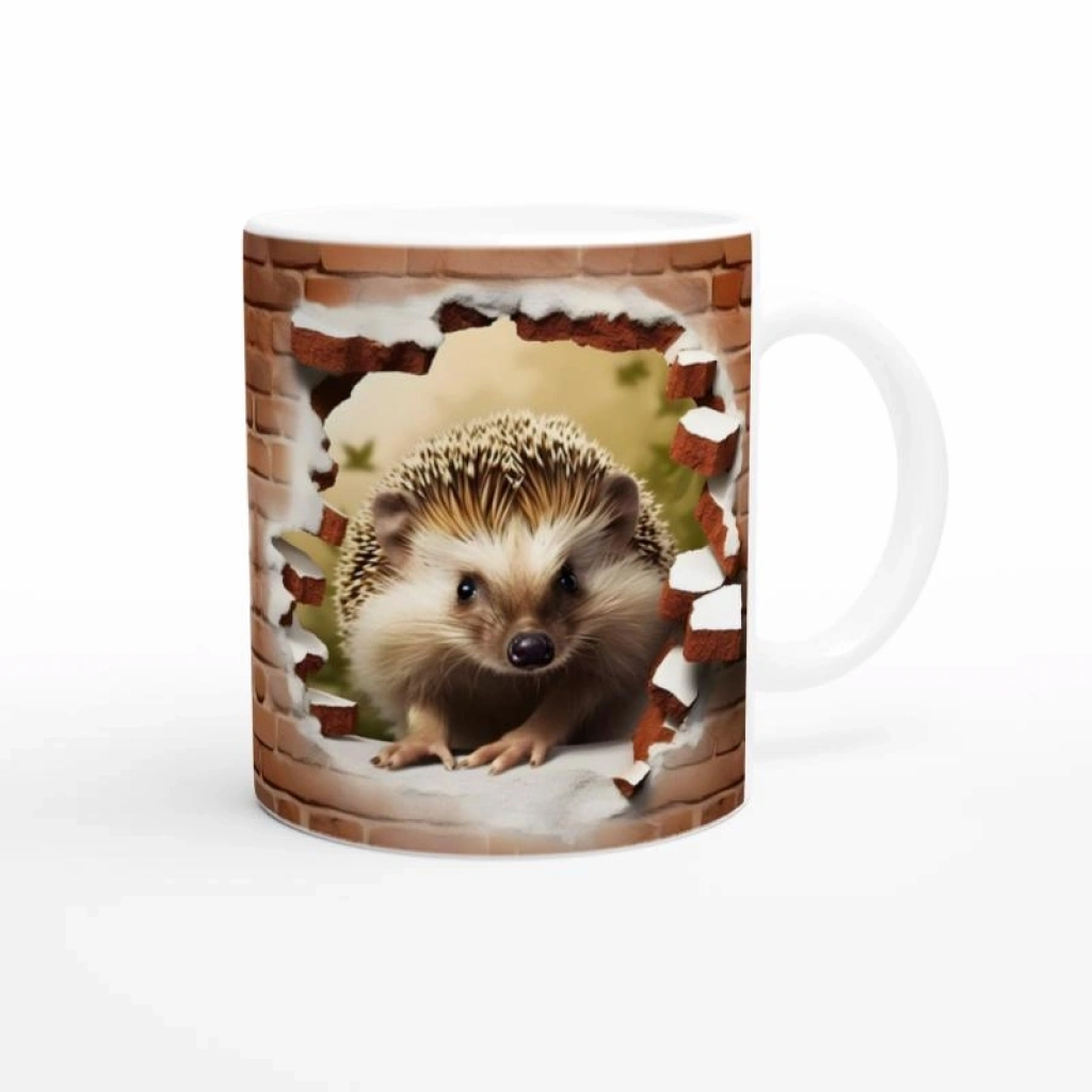 Tuğla duvarın arkasından çıkan minik kirpi detaylarıyla, bu kupa her yudumda gülümsetir.