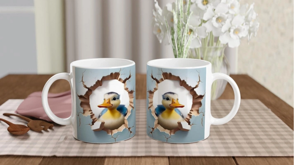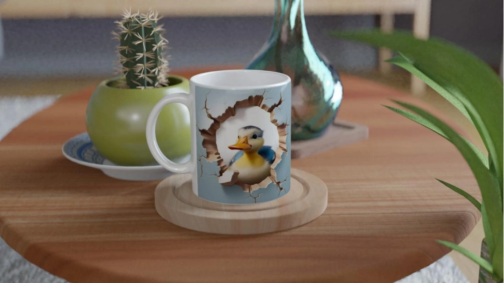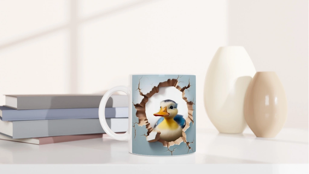 Duvarı Delen Sevimli Ördek Baskılı Kupa Bardak