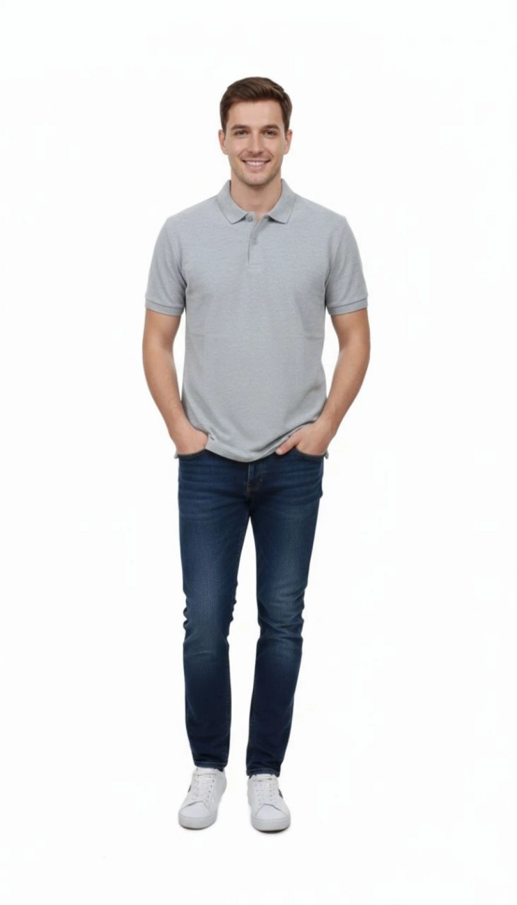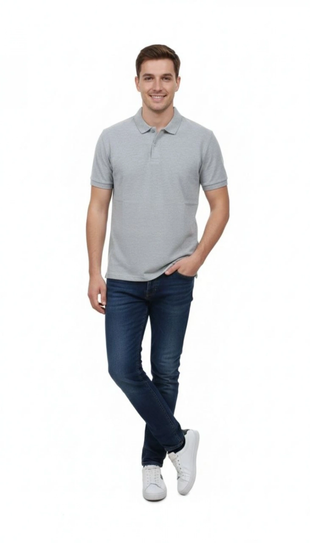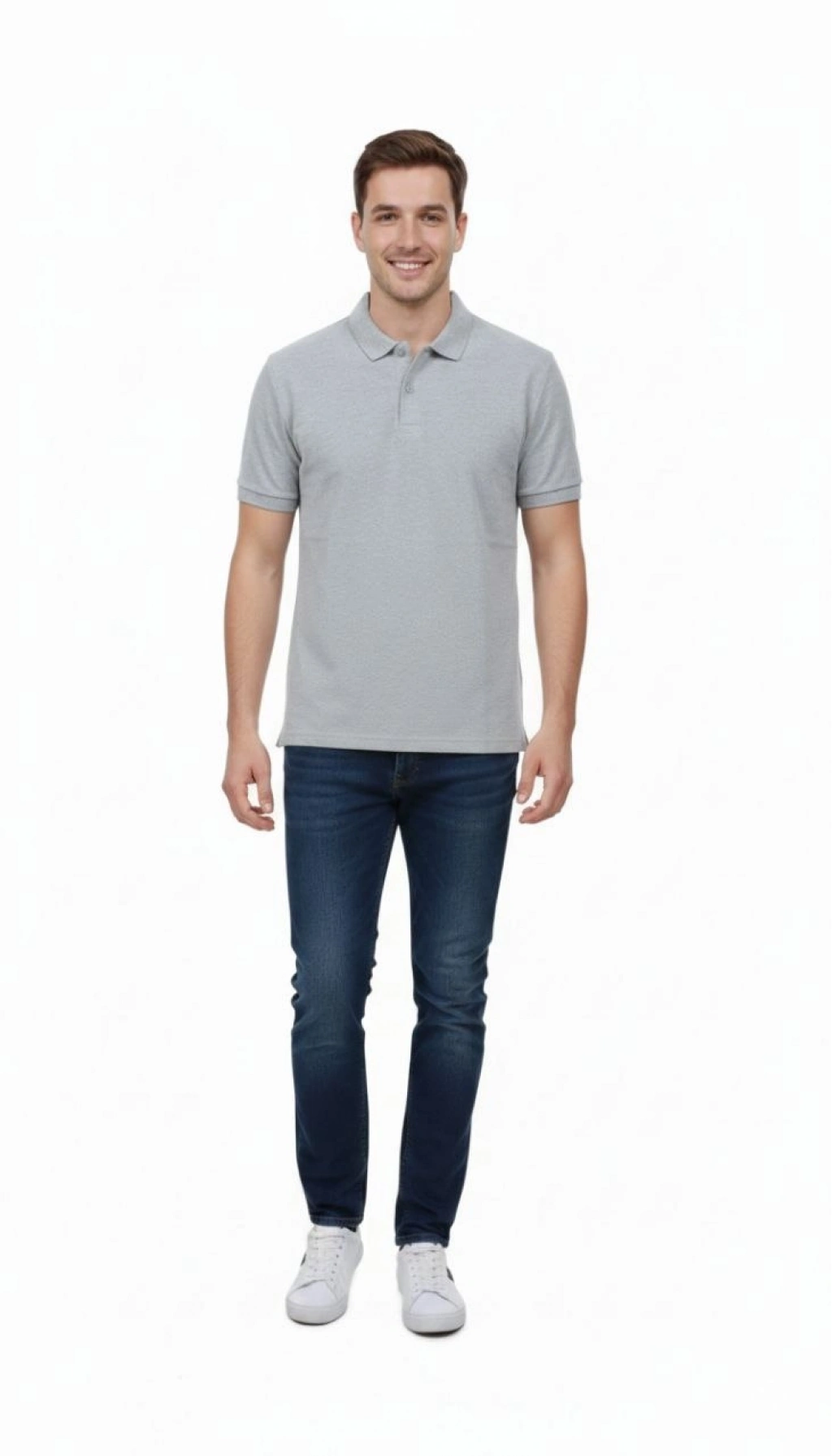 Erkek Pike Kumaş Düğmeli Yaka Regular Fit Günlük Kısa kol Tişört T-shirt - Gri