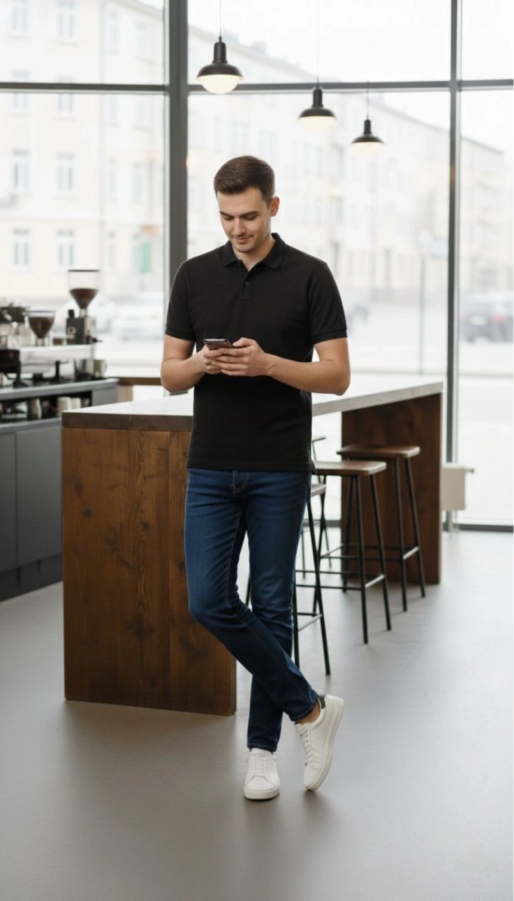 Erkek Pike Kumaş Düğmeli Yaka Regular Fit Günlük Kısa kol Tişört T-shirt - Siyah