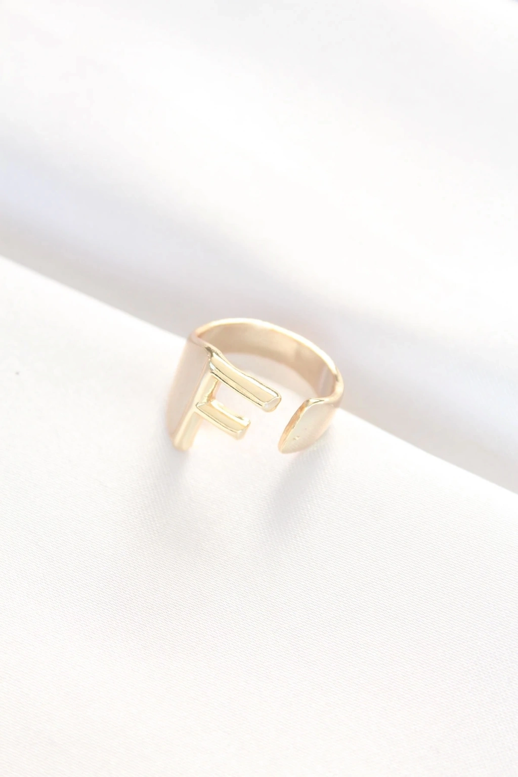 F Harfli Altın Renk Ayarlanabilir Yüzük