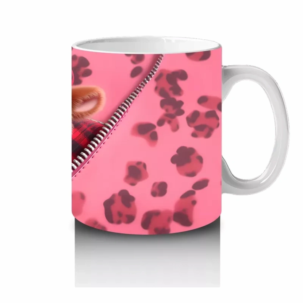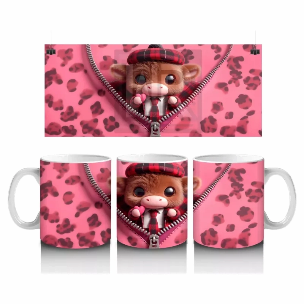 Fermuarlı Kalpli Fon Üzerinde Tatlı Buzağı – Baskılı Kahve Kupası