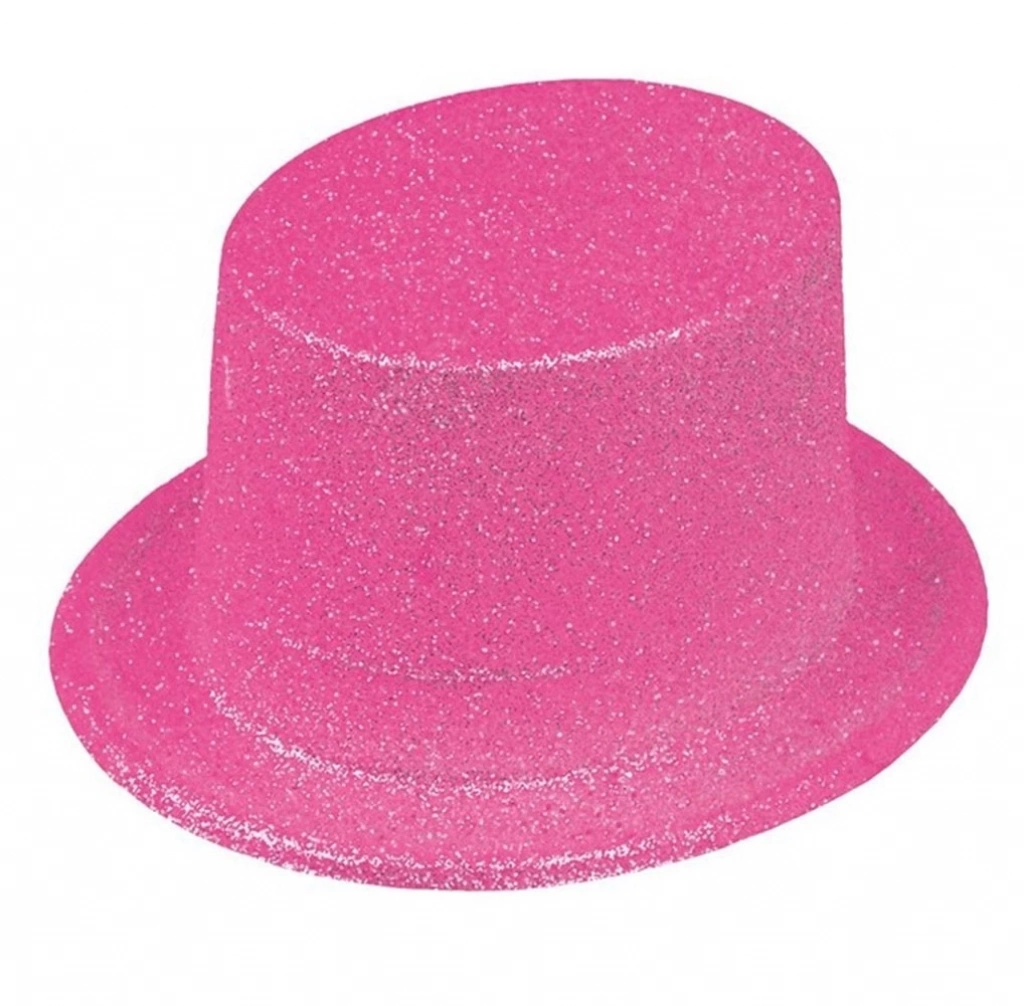 • Floresan Pembe Renk Simli Uzun Fötr Melon Şapka 12 Cm