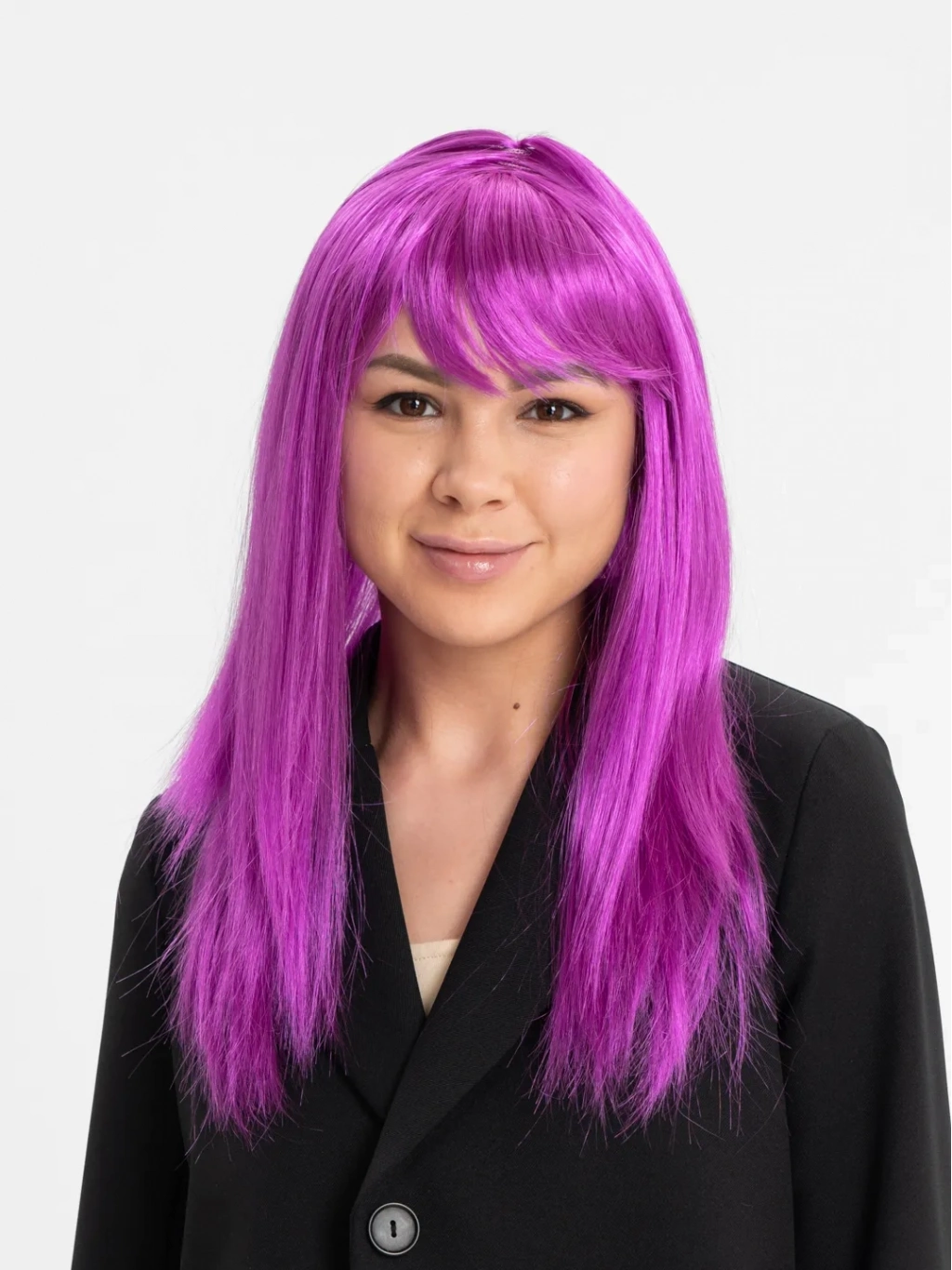 Bu peruk, canlı ve cesur fuşya rengi ile dikkat çekici bir görünüme sahiptir. Düz kesimi ve uzunluğu ile modern ve şık bir tarz sunar.