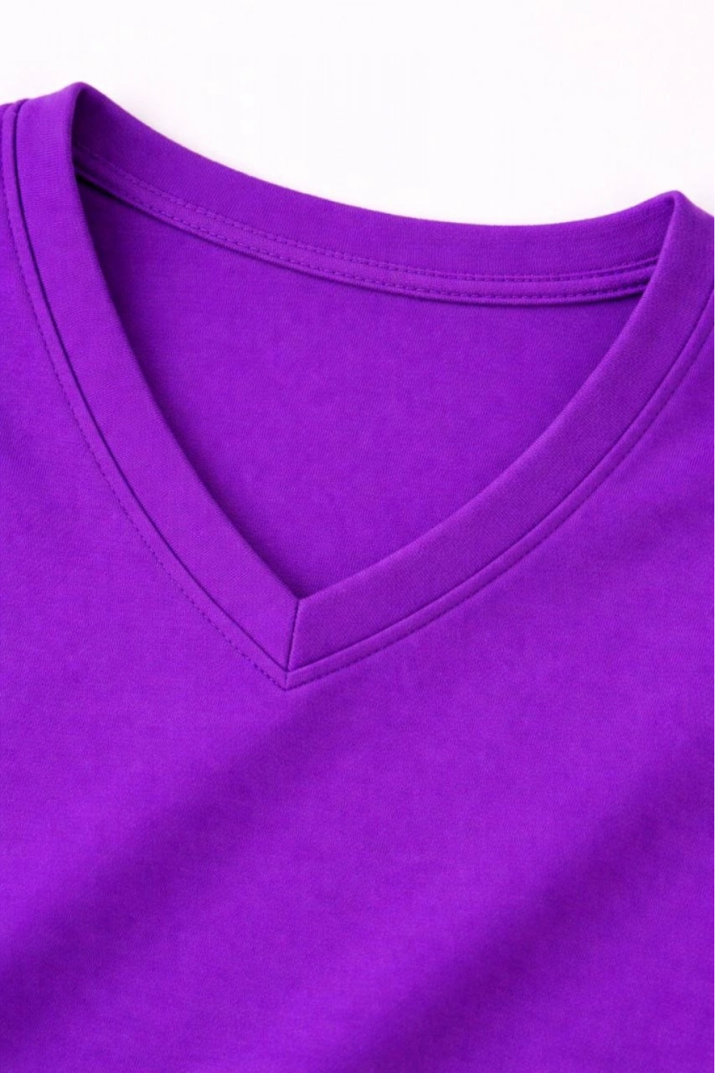 Genç Erkek Çocuk V Yaka Tişört Yazlık Model Günlük Basic Body - Mor