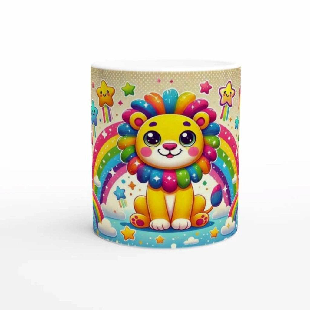 Gökkuşağı Yelesiyle Neşeli Aslan Temalı Çocuklara Özel Baskılı Kupa Bardak
