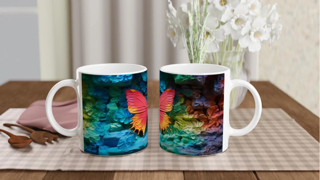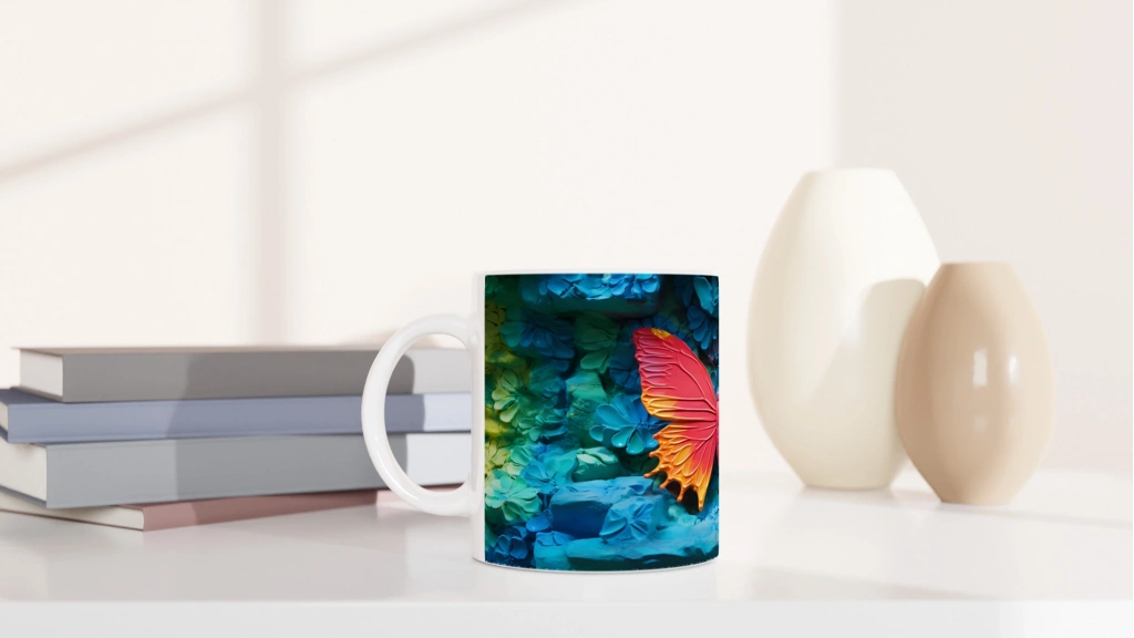 Gökkuşağı Zeminli Turuncu Kelebek Temalı Baskılı Kupa Bardak, dikkat çekici tasarımı ve parlak renk geçişleriyle pozitif bir atmosfer yaratıyor. Renkli yaşam tarzını yansıtanlar için ideal bir tercih!