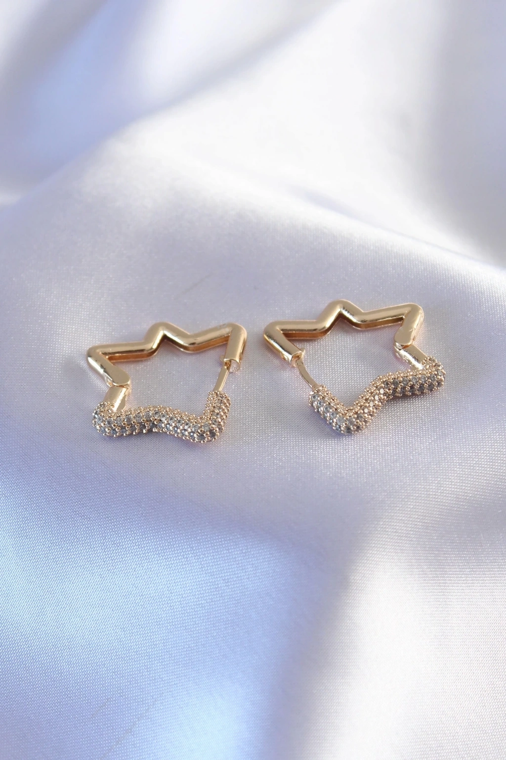 • Gold Renk Zirkon Taşlı Yıldız Model Kadın Küpe