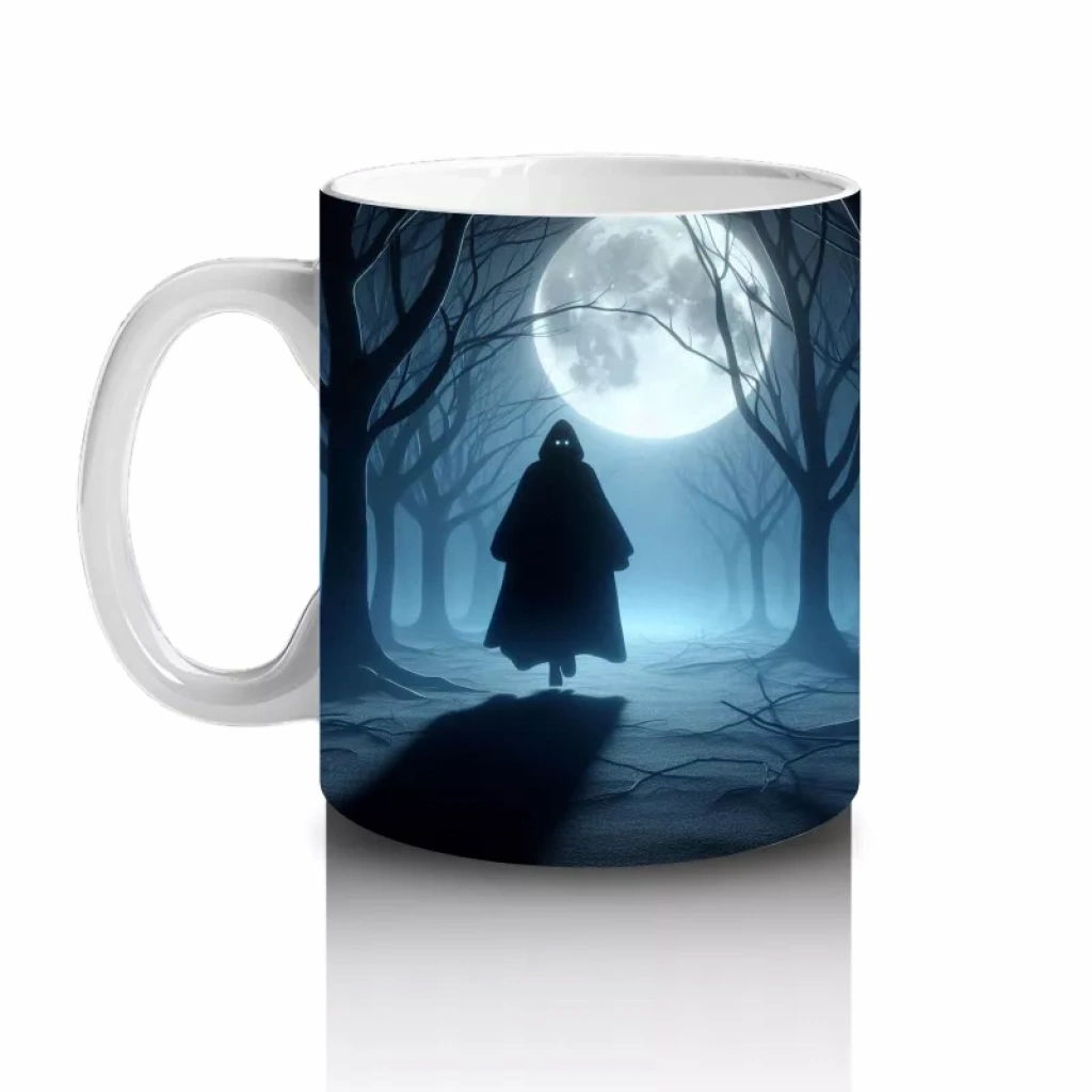 Gotik Koridorda Dolunayla Aydınlanan Cadı Silüeti Temalı Cadılar Bayramı Baskılı Kupa BardakGotik koridorda dolunayla aydınlanan cadı silüeti temalı bu kupa bardak, Cadılar Bayramı’na gizemli ve mistik bir atmosfer katar.