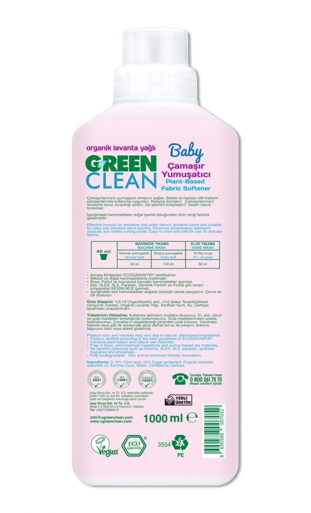 Green Clean Baby Bitkisel Çamaşır Yumuşatıcı 1000ml Özellikleri;