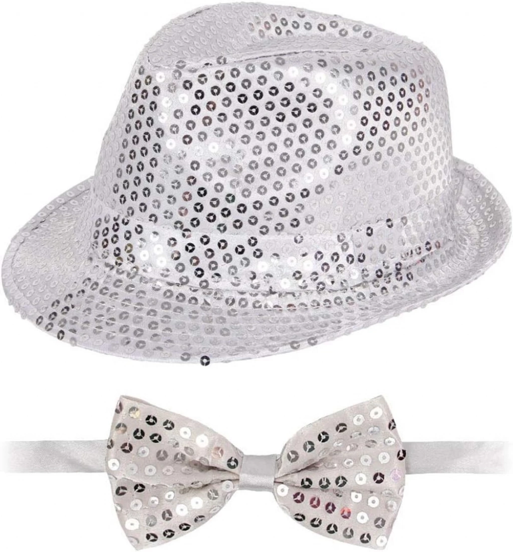 Göz alıcı bir tarz oluşturmak isteyenler için Gümüş Payetli Şapka ve Papyon Seti tam size göre Işıltılı tasarımıyla özel davetlerden temalı partilere kadar her ortamda fark yaratın.