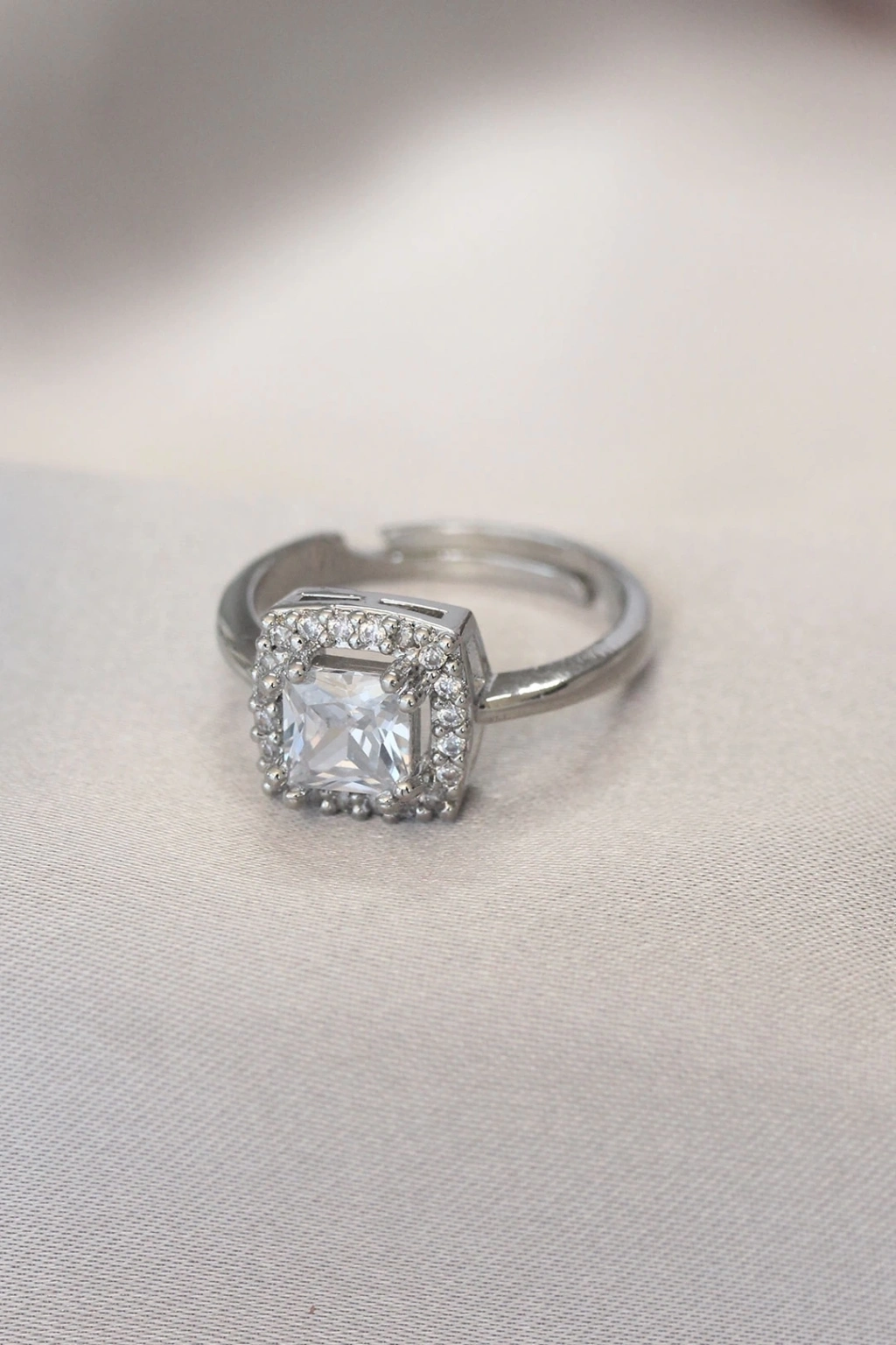 • Gümüş Renk Baget ve Zirkon Taşlı Kare Yüzük