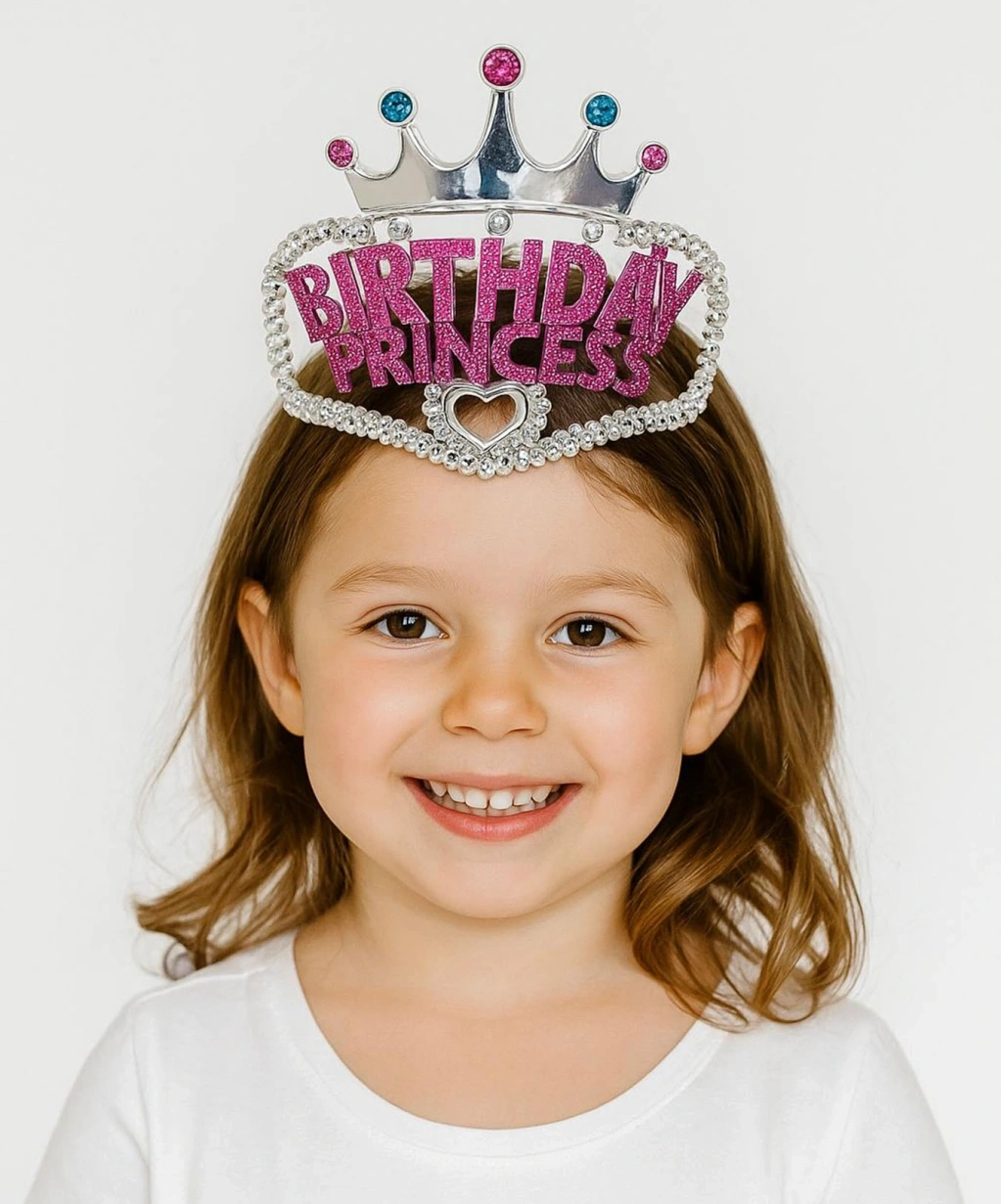 Gümüş Renk Taç Üzeri Pembe Birthday Prenses Yazılı Çocuk Parti Tacı: Kızınızın Doğum Gününe Prenses Dokunuşu!