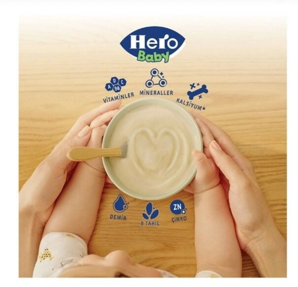 • Hero Baby Sütlü 8 Tahıllı Peynirli Pekmezli 8 farklı tahılın katkısını pekmezle birleştirerek sunuyor.