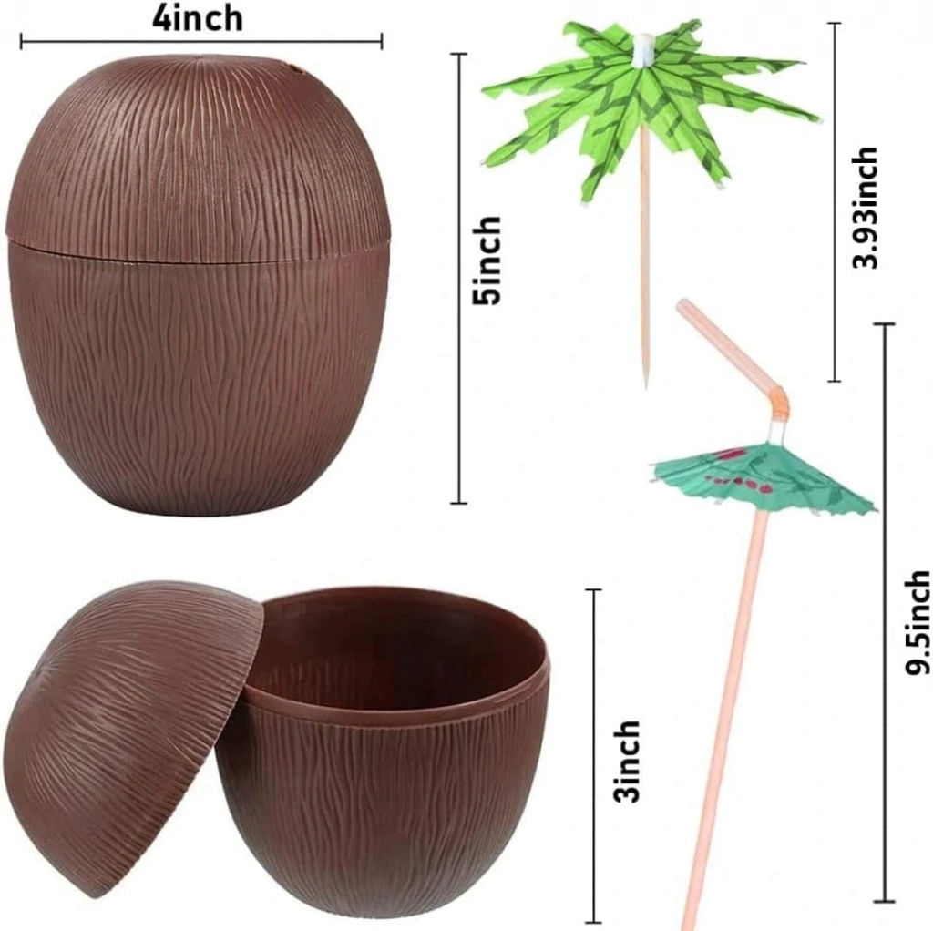Hawaii esintisini partilerinize taşıyın! Hindistan cevizi şeklindeki pipetli içecek kabı, 10x13 cm boyutu ile rahat bir içim deneyimi sunar. Yaz partileriniz, plaj etkinlikleriniz veya evdeki soğuk içecek keyfiniz için mükemmel bir seçenek.